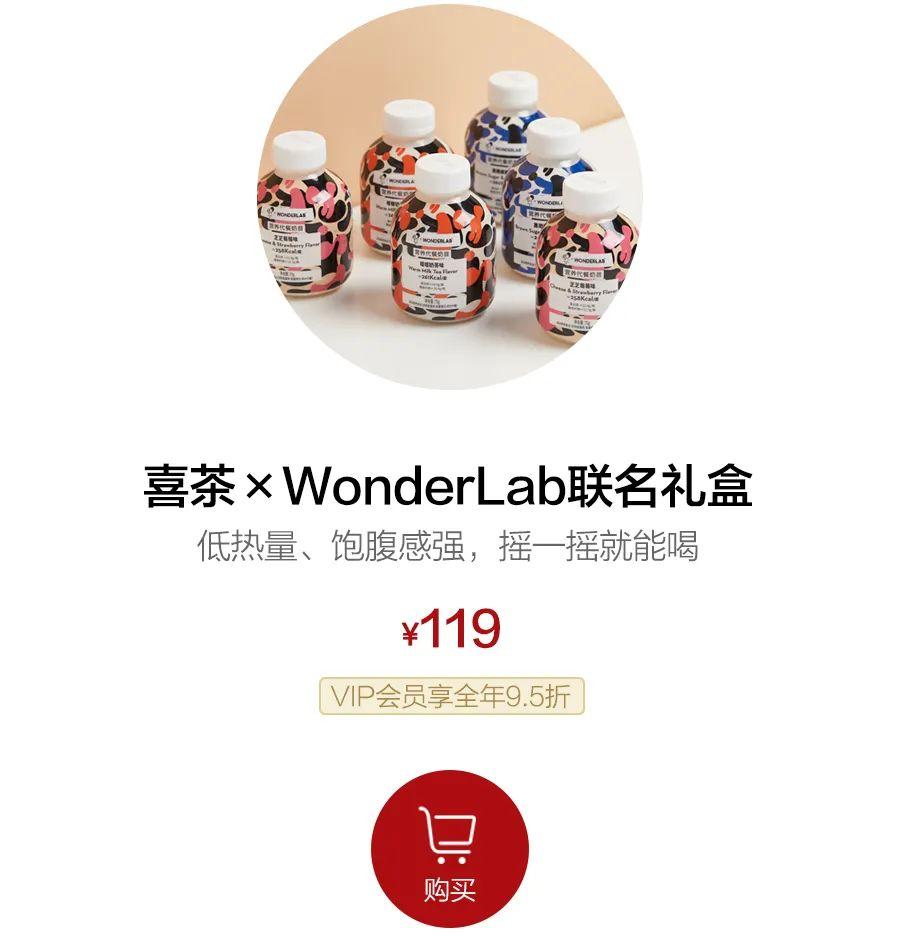 一盒3种口味,每种口味各2瓶,每瓶75g。礼盒里还内含幸运刮刮卡套装,有机会刮出喜茶兑换券或WonderLab免单名额哦!食用方法:将粉剂摇匀,加入温水到水位线(约250ml),摇匀后饮用。建议冲调后半小时内饮用完毕。WonderLab喜茶联名礼盒,现一条生活馆精选▼